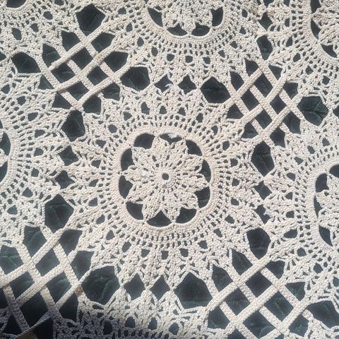 Käsinkudottu päiväpeite.
