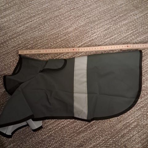 Hyväkuntoinen sadetakki,kakkapussi taskulla.