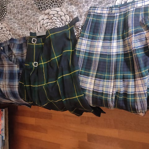 Täysin käyttämätön New Yorkerin punainen skottiruutuhame mustalla solki koristeella. Koko L