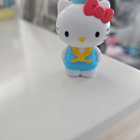 Hello Kitty hahmo, jossa ripustusklipsi. Koko 10 cm. Nouto Katajanokalta tai Tori Diilinä.