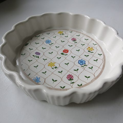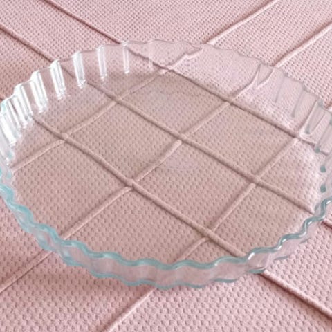 Moitteetomassa kunnossa oleva piirakka vuoka, jossa on mustikkapiirakka ohjelma. Halkaisija 26.5 cm, syvyys n 4cm.