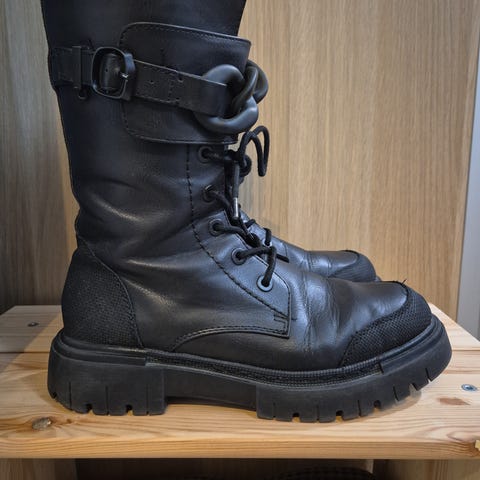 Naisten nilkkurit, vetoketjulla. Käytetyt mutta siistit. Pieni lämmin vuori, sopii talveen mutta ei koville pakkasille.