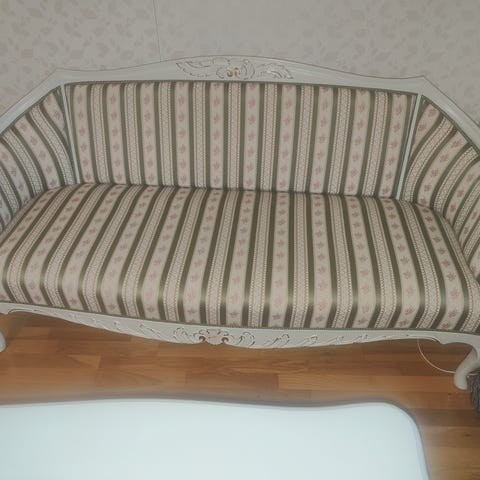 Rokokoo kalusteryhmä - sohva, pöytä ja 4 pikkutuolia