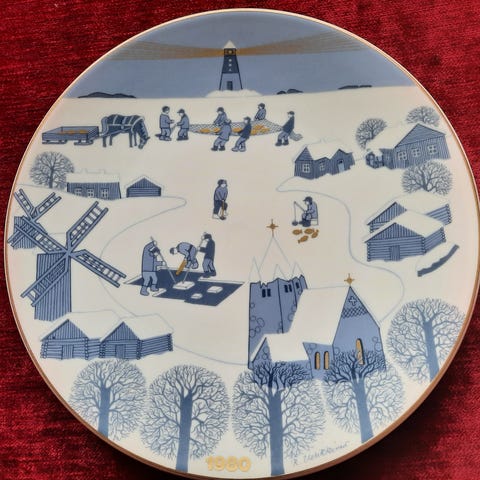 Raija Uosikkinen keräilylautanen/ joululautanen Luistelijat Skaters, halkaisija 11,5 cm. Toridiili/ nouto.
