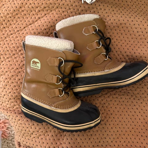 Myydään Sorel lasten talvikengät, koko 35. Olleet käytössä kahdella lapsella. Kengät ovat valmistettu vedenkestävästä materiaalista ja niissä on lämmin vuori, joka sopii kylmiin olosuhteisiin. Nouto Naantalista (Taimo)