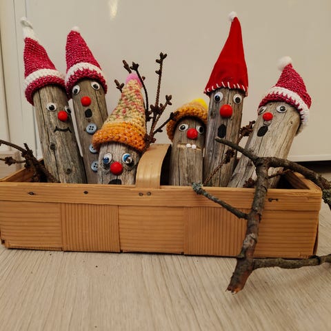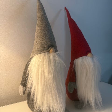 Iloiset tontut vailla uutta kotia. Korkeus 50 cm. Yhteishintaan 10 €. Vain nouto.