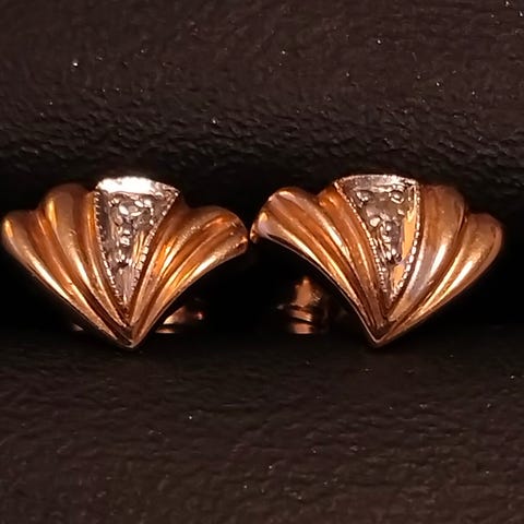 Kuvien mukaiset kultaiset ametisti timanttikorvakorut, korkeus n. 9 mm, leveys 8 mm, yhteispaino 1,4 grammaa, pitoisuus 585.