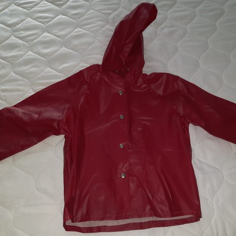 Pinta on sadetakki kangasta, vartalossa fleecevuori hihoissa kangasvuori.