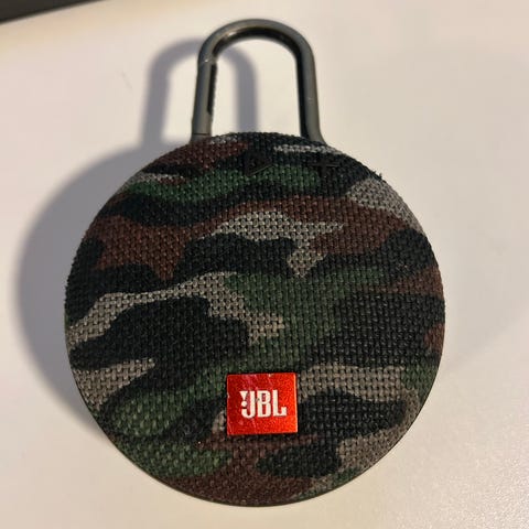 JBL kaiutin sopii hyvin kannettavaan käyttöön. Laturi mukaan