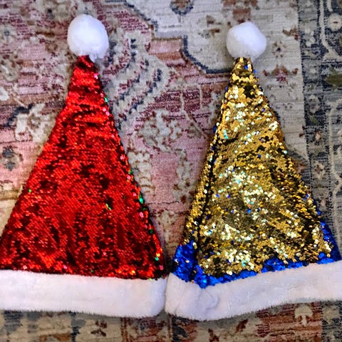 Uusi tokmannin paljettitonttulakki. (3,95e)Olikin liian pieni 10v päähän. Nouto tai postitus toridiilillä