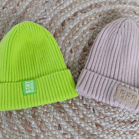 2 kpl vauvan trikoopipoja. Toisessa kokolappu 74 cm (6-9 kk) mutta sanoisin molempien sopivan n. puolivuotiaalle vauvalle :)