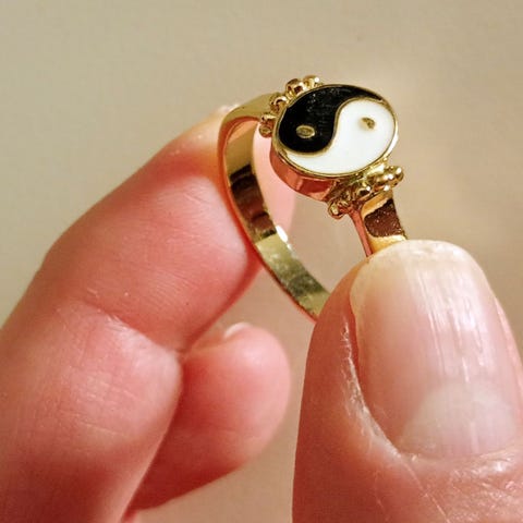 Xuping sormus punaisella ja kullanvärisellä viimeistelyllä. Sormuksessa on leveä muotoilu ja koristeena useita pieniä koristekiviä. Laadukas materiaali, ei tummu.