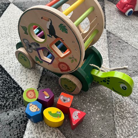 Hyväkuntoinen vauvan punainen rattilelu äänitehosteilla. Paristokäyttöinen.