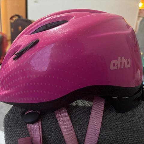 Lasten kypärä, jossa on sininen ja pinkki eläinaiheinen kuosi. Kypärä on varustettu säädettävillä hihnoilla ja pehmustetulla sisäosalla turvallista ja mukavaa käyttöä varten. Kypärässä on säätöpyörä. Ollut meillä 5 vuotiaalla muutaman kerran käytössä.