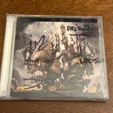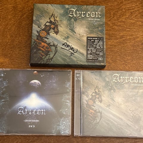 Ayreonin Actual Fantasyn CD+DVD Revisited-versio Arjen Lucassenin ja Robert Soeterboekin signeerauksilla.