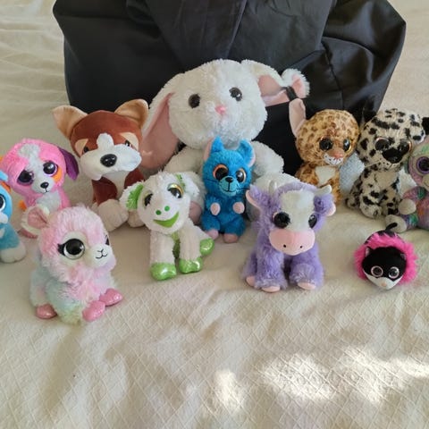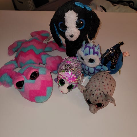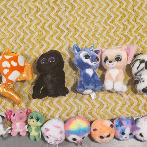 11kpl kimallesilmäpehmoleluja. Suurin osa merkkiä Ty. Yksi Wild Rebublic ja yksi Lumo Stars.