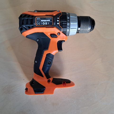 AEG AL 1915 akkukäyttöinen porakone ja siihen kuuluva laturi. Väri oranssi. Sopii erilaisiin poraustöihin ja ruuvaamiseen.