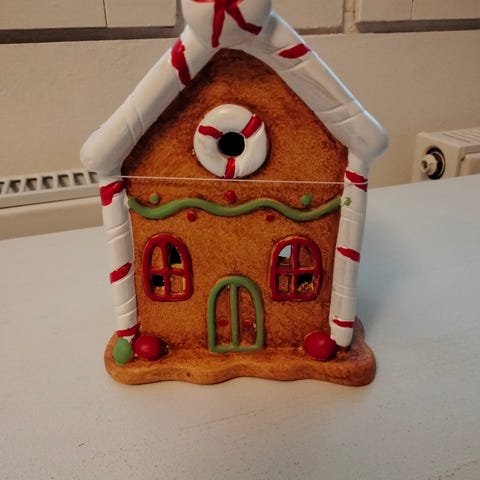 Neljä erilaista keraamista joulutaloa. Kaksi Finmarin ja niissä toimii patterilla valo. Kaksi tuikkukynttilälle. 3 mattapintaisia ja yyhdessä kiiltävä lasituspinta.Yhteishinta 25 euroa.