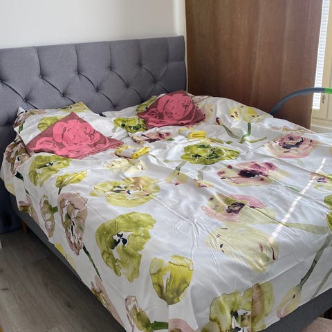 Uusi pussilakanasetti, Fantasia vaaleanpunainen. Koko 150x210 cm ja tyynyliina 50x60 cm. 100% puuvillasatiinia.