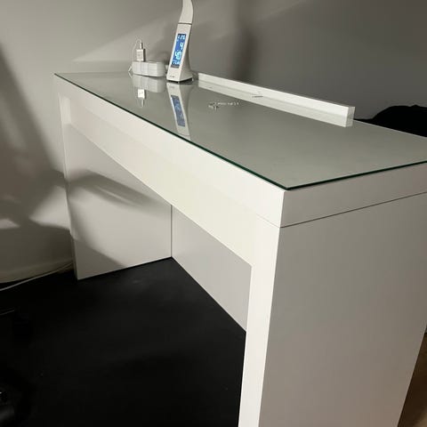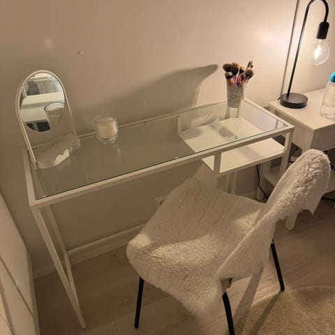 Laatikollinen pöytä, peili, ja valot. Valot on teipattu peiliin jaa saa irti halutessa. Pöytä on alunperin kai jyskistä, valot ikeasta.