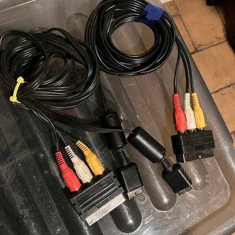 pelikonsolien AV johtoja