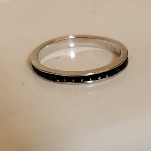 Hopeinen sormus. Valkoinen zirkonikivi. Koko - 20,6 mm.