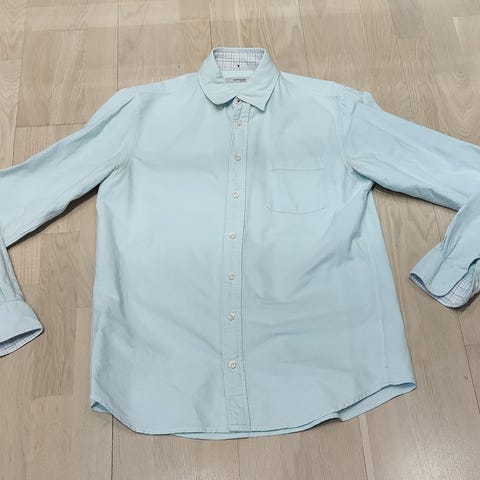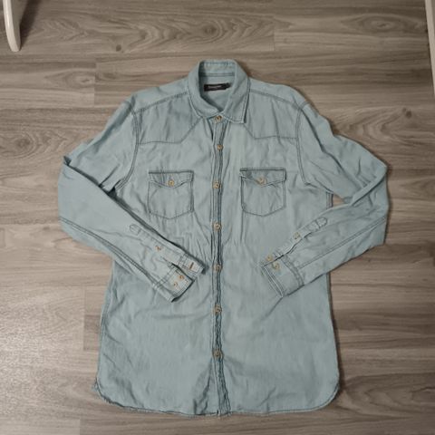 Hyväkuntoinen miesten harmaa kauluspaita. Pieni tahra edessä. Merkki: Dressmann. Koko: M/ Slim fit.