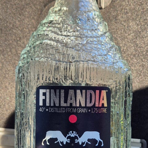 Finlandia Vodka Frozen Ice -taskumattimallinen pullo (500ml). Tapio Wirkkala. Ei etikettiä. Korkki kulunut.