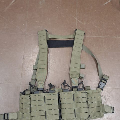 Musta PC kaikilla pakettiin kuuluvilla irto-osilla eli kaksi zip-on irtopaneelia, neljä pehmustepalaa, olkatoppaukset ja nuo verkkomaiset paneelit jotka voi laittaa pehmusteponttoonien paikalle (viimeinen kuva). Erittäin hyväkuntoisia tai uudenveroisia, jotain pieniä jälkiä tai nyppyjä pehmusteissa joihin Velcro on tarttunut kantolaitetta käsitellessä ja säilyttäessä.