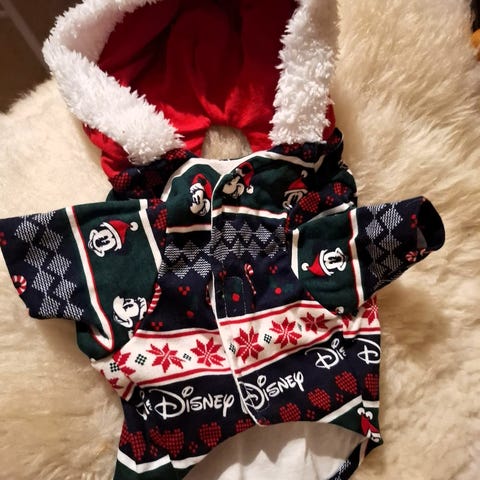 Myyn supersöpön minikoiran tai koiranpennun jouluisen neuleen. Poron nenä on hauska punainen pallura selän päällä. Jäi harmillisesti pieneksi meillä.