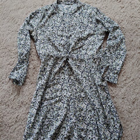 Harmaa kukkamekko jossa puolipitkät hihat, koko M.
