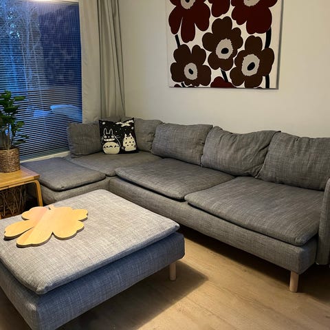 Olen kuvan divaanin ostanut ja tarvin uuden puhtaan päällisen ja kuohkeammat tyynytkin kelpaa.