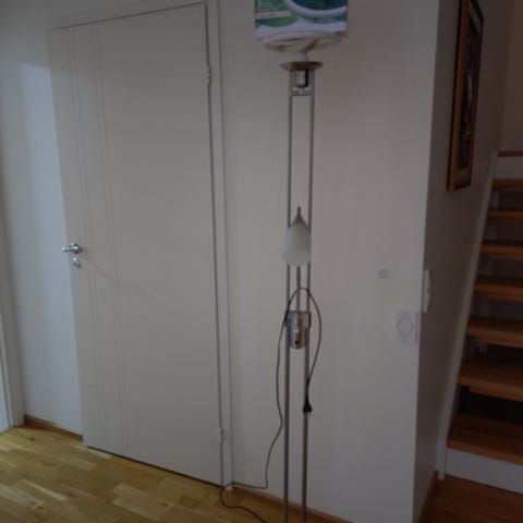 Myydään lattiavalaisin kahdella lampulla toimiva. Väri kulta