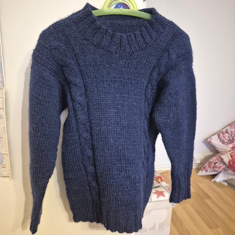 Itsetehty pusero. Puseron hihan pituus olkapäästä mitattuna n32cm ja kaula-aukosta helmaan n38cm.