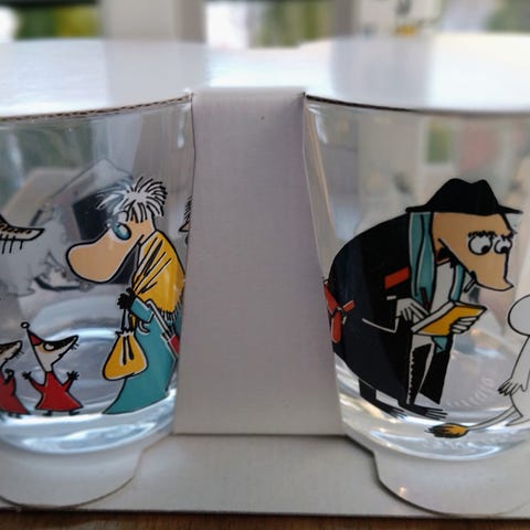 Muumi juomalaseja RAKASTUMINEN ja YHDISTYSELÄMÄÄ