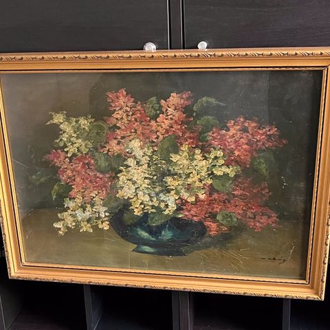 Kaunis signeerattu öljyvärimaalaus kukkataulu n.60 x 70 cm