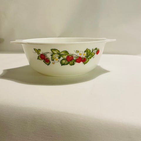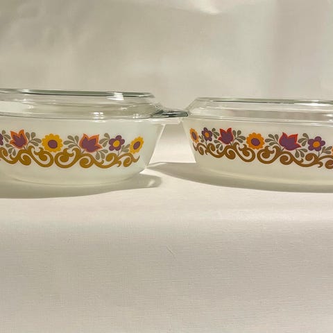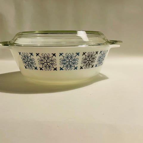 Pyrex Rustic Tree-sarjan 70-luvulla valmistettu lasivuoka, ei kantta.