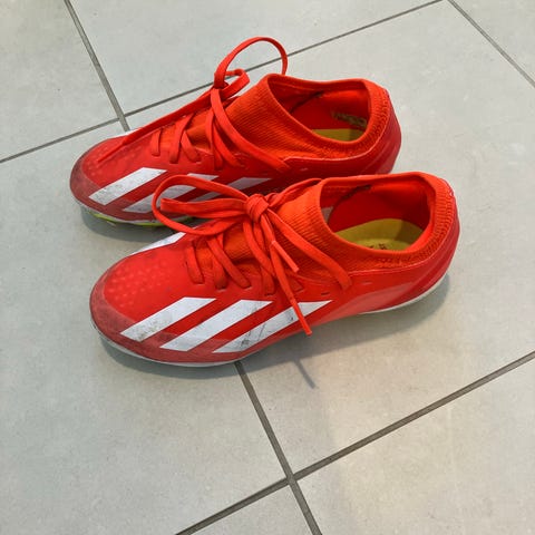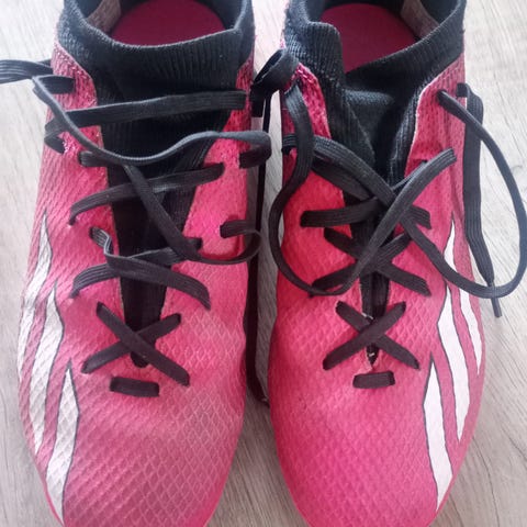 Adidas lasten nappikset, mustapunavihreät kokoa 32 hinta 4e, punaoranssit koko 33 hinta 5e, (mustavalko-oranssit Adidas predatorit, nauhattomat MYYTY). Kaikki ehjiä ja hyvässä pelikunnossa.