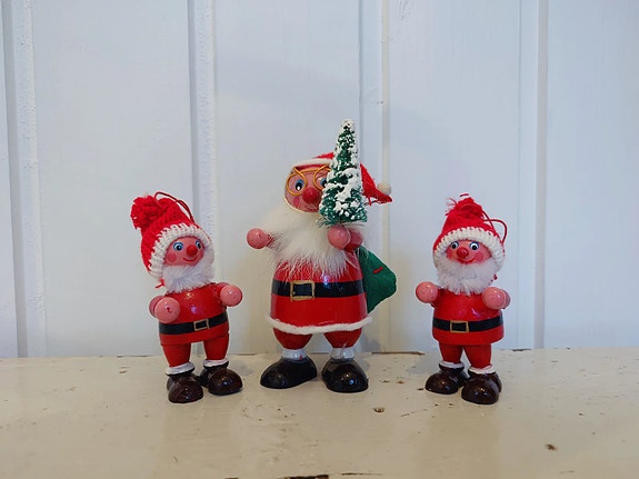 Ehjät ja hyväkuntoiset. Toisessa tonttulakissa vähän jälkeä. Toisen tontun iho on hiukan punertavampi kuin toisen, mutta muuten nämä ovat ihan samanlaiset.