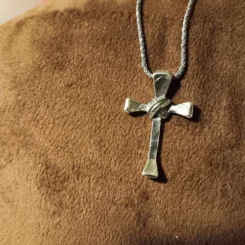 Käytetty hopeinen risti. Käytön jälkiä.