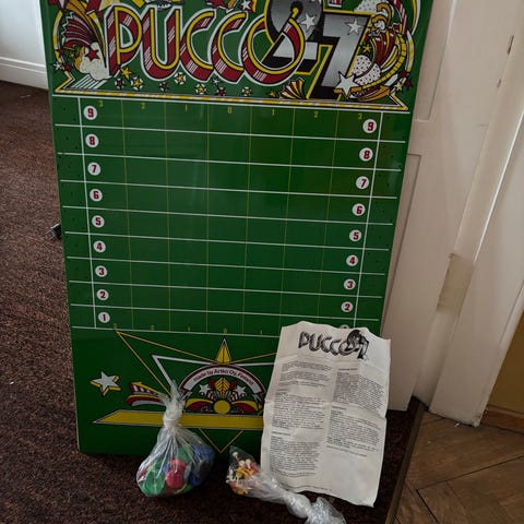 Upea kotimainen koko perheen Pucco 27 -lautapeli n. 1970-luvun puolivälistä. Kustantajan, tamperelaisen Oy Artko Ab:n, arkistokappale, pelaamaton ja täysin uudenveroinen. Pelilauta akryylimuovia, laatutuote, joka aikoinaan menestyi myös vientimarkkinoilla. Pelinä muistuttaa hitusen koronaa ja jopa nykypäivän curlingia. Pelilaudan mitat 50 x 80 cm, paksuus 1,5 cm, pohja pehmustettu. Pakkauksen mitat 80 x 3 x 54 cm, paino n. 2 kg. Kotiinkuljetus järjestyy samaan hintaan Tampereella ja naapurikunnissa, kauemmaksikin polttoainekuluja vastaan. Lähetyskulut lisätään. Kysy!