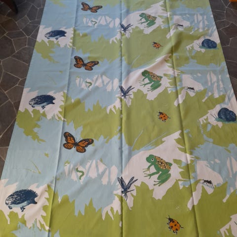 2x Vallila Vappukukka -sivuverho, turkoosi. Siistit, kirkkaat värit. Tehdasvalmisteiset. 140x250cm.