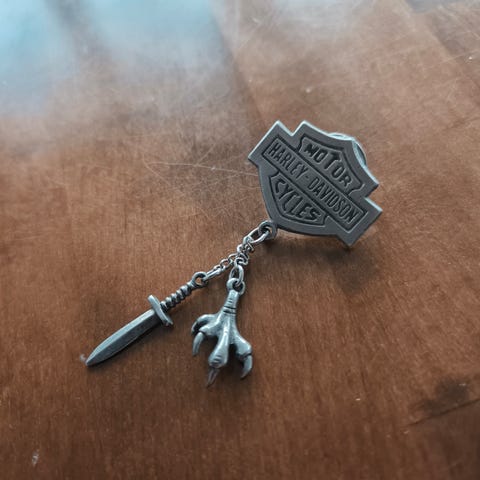 Myydään kuvan vanhempi moottoripyöräily esine.