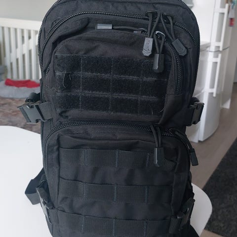 Trooper -päiväreppu on tarkoitettu kaikenlaiseen retkeilyyn. Lukuisista erilaisista kiinnitysvaihtoehdoista löytyy varmasti jokaiselle mieluinen. Repussa on mm. Molle-kiinnityksiä sekä remmejä. Nämä sivuista ja pohjasta löytyvät kiinnitysvaihtoehdot mahdollistavat myös monipuolisen ulkoisen kiinnityksen. Repun etureunan yläosa on tarrapintaa. Tukeva ja hengittävä 3D-selkäosa mahdollistaa painaviempienkin kuormien kantamisen mahdollisimman miellyttävästi. Mitat: 350x300x500 mm Tilavuus: 35 L Paino: 1,8 kg Kangas: 600D Polyester/PVC