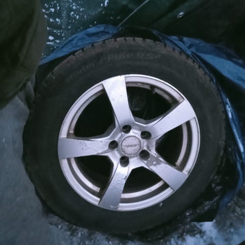 Lähes uuden veroiset 185/60 R14 nastarensarja peltivanteilla.