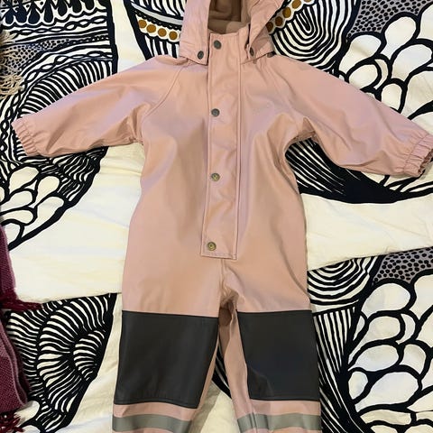 Hyvässä kunnossa oleva sadeasu yhdellä lapsella ollut käytössä. Koiratalous.