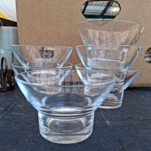 lasiset jälkiruokakulhot, joissa on koristeellinen uritettu muotoilu. Kulhot soveltuvat jälkiruokien tarjoiluun ja ovat läpinäkyvää lasia. Korkeus n 15 cm. Näitä 6 kpl/5€ kpl