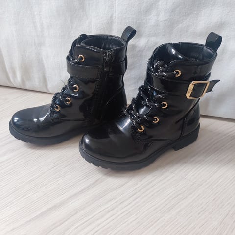 Kauniit kiiltonahkaiset nilkkurit. Koko 29. Sisämitta 16,5cm. Sisämitta Vetoketjut sivussa. Unohtuneet meillä kaappiin ja nyt pienet. Ihan uudet, laput irrotettu.