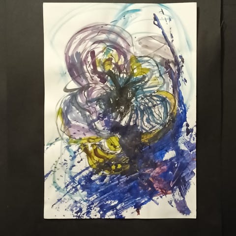 Taidejuliste, jossa on kuva naisen kasvoista ja kädestä, joka on koristeltu eri värisillä helmillä. Julisteessa on kontrastivärit, joissa korostuvat musta, sininen, kulta ja vaaleat sävyt kasvoissa. Juliste soveltuu seinäkoristeeksi. Ei kehystetty.