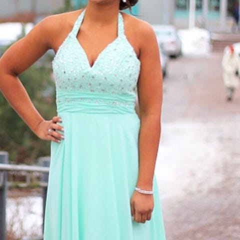 Myydään kerran Wanhojen tansseissa käytetty mekko. Etupuolella pieni tahra. Sopii S-M kokoiselle. Viimeisessä kuvassa mekko päälläni, josta näkee miten se laskeutuu 164cm mittaisen päällä.